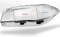 The headlamp fogging problem has been solved by applying an anti-fogging polymeric coating to the inside of the headlamp assembly. Plasmatreat has acquired extensive know-how in depositing anti-fog coatings using the low-pressure plasma (Aurora) process. Building on this experience, it has now become possible to apply this anti-fog coating using atmospheric plasma (Openair-Plasma®) as well. The anti-fog coating process can be integrated easily in existing production lines for high speed production of automobile headlamps.