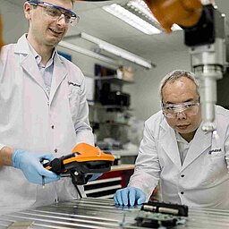 When it comes to multicomponent parts, we have various means of simulating plasma-supported adhesive strength. For example, with induction heating we can produce samples made from plastic-metal or rubber-metal compounds. The same laboratory is also available for testing adhesive compounds according to customer specifications.